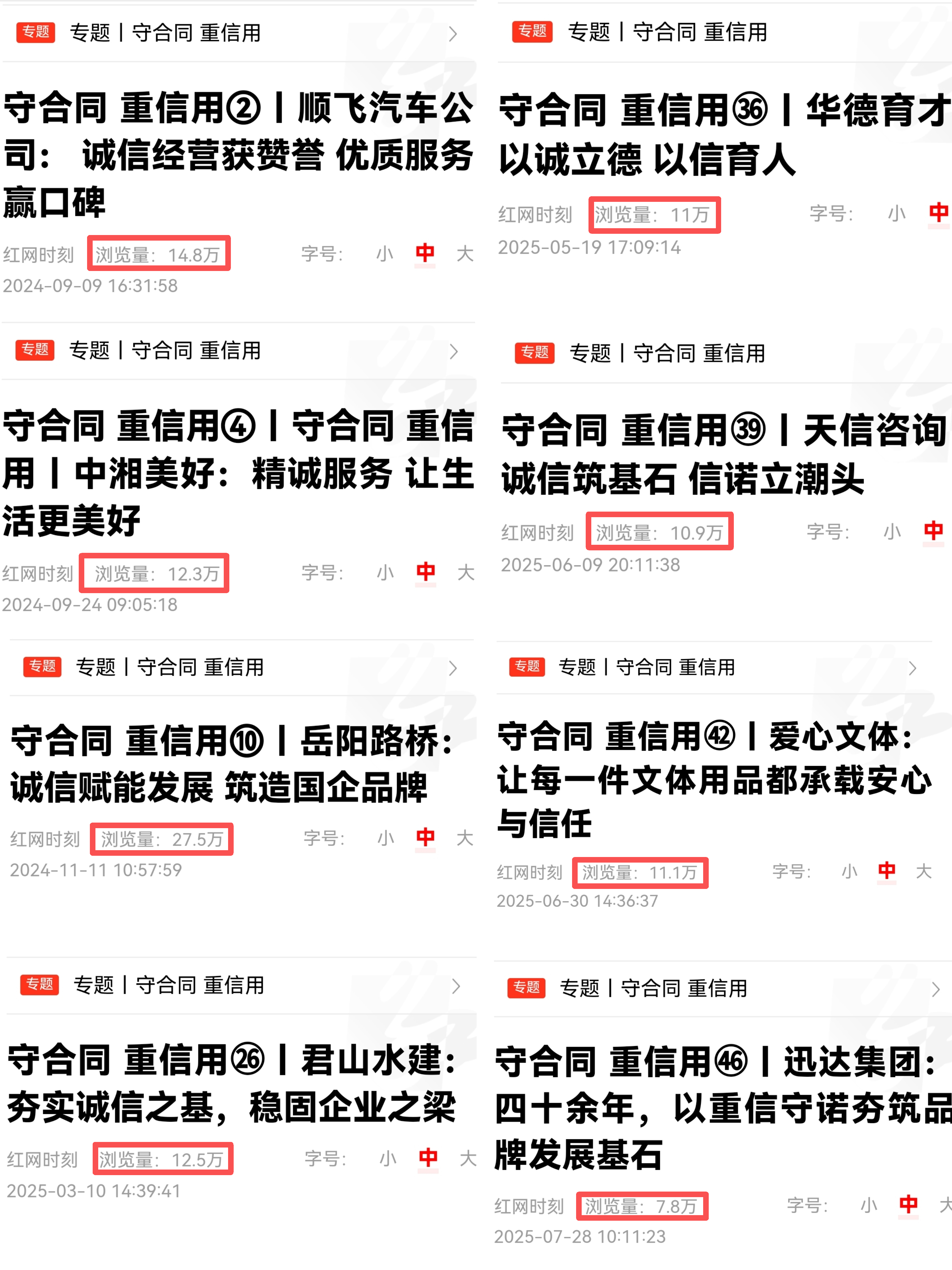 本次宣传推广中,单家企业最高阅读量逼近30万次,活动总阅读量成功突破500万次大关。借助高流量传播效应,守信企业的先进经营经验与良好诚信形象实现广泛触达,“守合同重信用”的核心理念进一步融入市场共识、深入人心。
